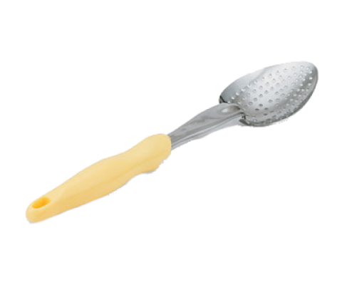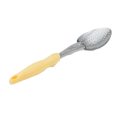 Ergo Grip™ Heavy Duty Spoon, yellow nylon ergonomic handle, equipped with all-natural antimicrobial, solid, 13-13/16", heavy gauge 18/8 stainless steel, high temp 450° F (232° C), textured surface handle with built in stopper notch, NSF, imported, Jacob's Pride® Collection, Limited Lifetime Warranty (Refer to vollrathfoodservice.com for full warranty policy)