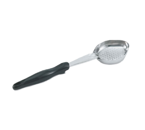 Spoodle®, 1-piece heavy duty, perforated oval bowl, handle coded black, equipped with all-natural antimicrobial, 2 oz. (59.1ML), 18/8 304 stainless steel, ergonomic design high temperature textured nylon handle heat resistant to 450°F (232°C), built-in stopper notch, capacity stamped on shaft, 13-1/16" overall L, 2-15/16"L bowl diameter, limited warr, NSF, imported, Jacob's Pride® Collection, Limited Lifetime Warranty (Refer to vollrathfoodservice.com for full warranty policy)