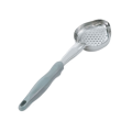 Spoodle®, 1-piece heavy duty, perforated oval bowl, handle coded gray, equipped with all-natural antimicrobial, 4 oz. (118ML), 18/8 304 stainless steel, ergonomic design high temperature textured nylon handle heat resistant to 450°F (232°C), built-in stopper notch, capacity stamped on shaft, 13-13/16" overall L, 13-11/16"L bowl diameter, limited warr, NSF, imported, Jacob's Pride® Collection, Limited Lifetime Warranty (Refer to vollrathfoodservice.com for full warranty policy)