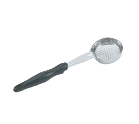 Spoodle®, 1-piece heavy duty, perforated round bowl, handle coded black, equipped with all-natural antimicrobial, 8 oz. (236ML), 18/8 304 stainless steel, ergonomic design high temperature textured nylon handle heat resistant to 450°F (232°C), built-in stopper notch, capacity stamped on shaft, 14-3/16" overall L, 4"bowl diameter, limited warr, NSF, imported, Jacob's Pride® Collection, Limited Lifetime Warranty (Refer to vollrathfoodservice.com for full warranty policy)
