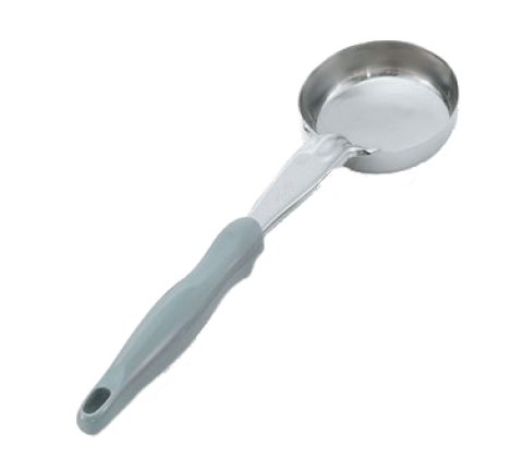 Spoodle®, 1-piece heavy duty, solid round bowl, handle coded gray, equipped with all-natural antimicrobial, 4 oz. (118ML), 18/8 304 stainless steel, ergonomic design high temperature textured nylon handle heat resistant to 450°F (232°C), built-in stopper notch, capacity stamped on shaft, 13-5/16" overall length, 3-1/4"bowl diameter, Jacob's Pride® Collection, Limited Lifetime Warranty (Refer to vollrathfoodservice.com for full warranty policy)
