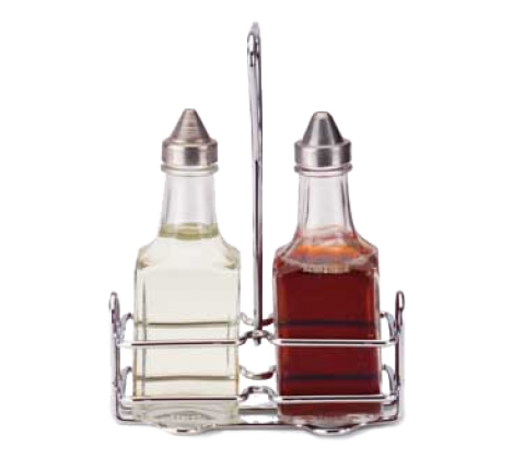 (DISCONTINUED upon depletion of stock, contact factory for availability) Dripcut® Oil & Vinegar Cruet Set, 5 oz., square glass jars with metal cap, & WR-1020 wire rack, 5-3/4"L x 2-5/8"W x 7-1/4"H (priced by each, packed (6) per case, cannot break case)