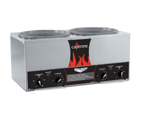Cayenne® Twin 7 quart, Well Countertop COOKER/WARMER (unit only), designed to Retherm & hold cooked product, stainless exterior, thermoset wells will not rust or pit, accommodates (2) 7 quart, insets, (2) 700W elements, 120V, 11.7A, NEMA 5-15P, NSF, UL, Cul, Made in USA (Refer to vollrathfoodservice.com for full warranty policy)