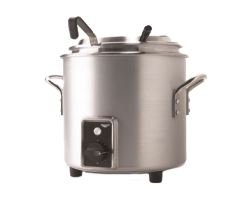 Retro Stock Pot Kettle Rethermalizer, 7 quart (6.6 liter), direct contact heating system with ceramic base element, capillary tube thermostat control, front access dials, power indicator light, (2) handles, low-profile inset, hinged cover (cover not NSF), includes soup cards & card holder (note: ladles shown in picture are not included), aluminum exterior with natural finish, non-skid feet, 120v/60/1-ph, 12.0 amps, 1450 watts, NEMA 5-15P, cULus, NSF, Made in USA (Refer to vollrathfoodservice.com for full warranty policy)