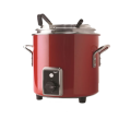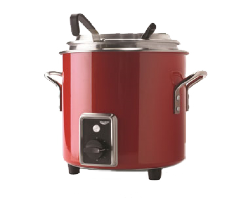 Retro Stock Pot Kettle Rethermalizer, 7 quart (6.6 liter), direct contact heating system with ceramic base element, capillary tube thermostat control, front access dials, power indicator light, (2) handles, low-profile inset, hinged cover (cover not NSF), includes soup cards & card holder (note: ladles shown in picture are not included), aluminum exterior with fire engine red powder coat finish, non-skid feet, 120v/60/1-ph, 12.0 amps, 1450 watts, NEMA 5-15P, cULus, NSF, Made in USA (Refer to vollrathfoodservice.com for full warranty policy)