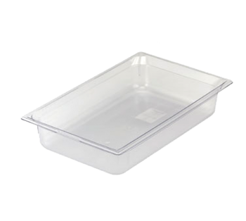 Super Pan® 1/1 GN Food Pan, 2-1/2" deep, low-temp polycarbonate clear plastic, top flange corners with concave indentation, anti-jamming, ramped sides, reverse form flattened edge, framing shoulder, interchanges with SPV stainless steel pan line, NSF, meets gastronorm (EN 631-1) standard (Refer to vollrathfoodservice.com for full warranty policy)