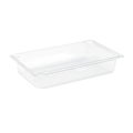 Super Pan® 1/1 GN Food Pan, 6" deep, low-temp polycarbonate clear plastic, top flange corners with concave indentation, anti-jamming, ramped sides, reverse form flattened edge, framing shoulder, interchanges with SPV stainless steel pan line, NSF, meets gastronorm (EN 631-1) standard, Made in USA (Refer to vollrathfoodservice.com for full warranty policy)