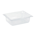 Super Pan® 1/2 GN Food Pan, 4" deep, low-temp polycarbonate clear plastic, top flange corners with concave indention, anti-jamming, ramped sides, reverse form flattened edge, framing shoulder, interchanges with SPV stainless steel pan line, NSF, meets gastronorm (EN 631-1) standard, Made in USA (Refer to vollrathfoodservice.com for full warranty policy)