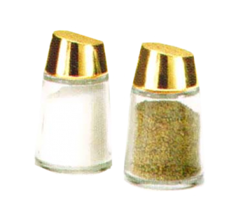 Dripcut® Continental Collection Salt & Pepper Shaker, 2 oz., glass round bottom jar, gold sloped cap (priced by each, packed (12) per case, cannot break case) (Refer to vollrathfoodservice.com for full warranty policy)