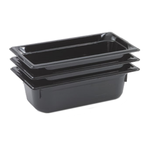 Super Pan® 1/3 GN Food Pan, 2-1/2" deep, low-temp polycarbonate black plastic, top flange corners with concave indention, anti-jamming, ramped sides, reverse form flattened edge, framing shoulder, interchanges with SPV stainless steel pan line, NSF, meets gastronorm (EN 631-1) standard, Made in USA (Refer to vollrathfoodservice.com for full warranty policy)
