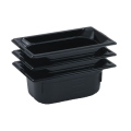 Super Pan® 1/4 GN Food Pan, 4" deep, low-temp polycarbonate black plastic, top flange corners with concave indention, anti-jamming, ramped sides, reverse form flattened edge, framing shoulder, interchanges with SPV stainless steel pan line, NSF, meets gastronorm (EN 631-1) standard (Refer to vollrathfoodservice.com for full warranty policy)