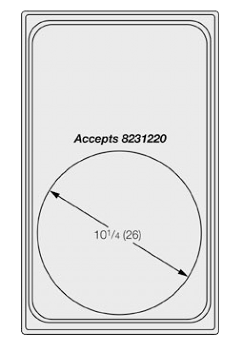 Miramar™ Template, for (1) medium round decorative pan, stainless/satin finish edge, accommodates (1) 8230010 round pan, durable 12 gauge stainless, for hot or cold applications, dishwasher safe, integral corner design on bottom to ensure secure fit in well opening, fits all standard 12" x 20" hot/cold wells, warmers & chafers, NSF, Made in USA (contact Vollrath for lead time), made to order, cannot be cancelled or returned (Refer to vollrathfoodservice.com for full warranty policy)