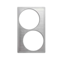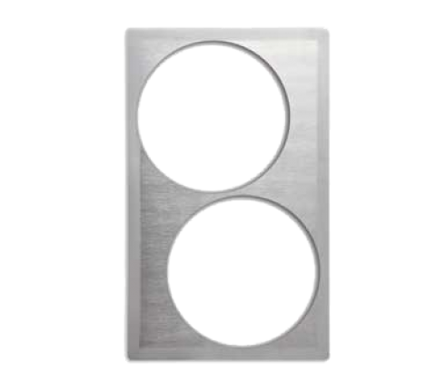 Miramar™ Single Size Template for Miramar™ Cookware, stainless steel satin edge, (2) large round cutouts, accommodates (2) 49411 5 quart casserole, overall dimension 21-1/8" x 12-3/4", NSF, Made in USA (contact Vollrath for lead time) (Refer to vollrathfoodservice.com for full warranty policy)