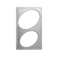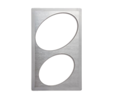 Miramar™ Single Size Template for Miramar™ Cookware, stainless steel satin edge, (1) medium oval & (1) large oval cutout, accommodates (1) 49420 10" oval au gratin & (1) 49412 12" oval au gratin, overall dimension 21-1/8" x 12-3/4", Made in USA (contact Vollrath for lead time) (Refer to vollrathfoodservice.com for full warranty policy)