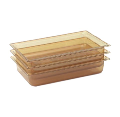 Super Pan® 1/1 GN Food Pan, 6" deep, high-temp amber resin, top flange corners with concave indentation, anti-jamming, ramped sides, reverse form flattened edge, framing shoulder, interchanges with SPV stainless steel pan line, NSF, meets gastronorm (EN 631-1) standard, Made in USA (Refer to vollrathfoodservice.com for full warranty policy)