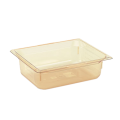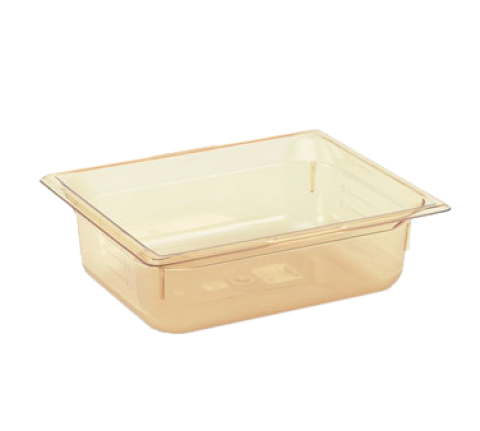 Super Pan® 1/2 GN Food Pan, 2-1/2" deep, high-temp amber resin, top flange corners with concave indentation, anti-jamming, ramped sides, reverse form flattened edge, framing shoulder, interchanges with SPV stainless steel pan line, NSF, meets gastronorm (EN 631-1) standard, Made in USA (Refer to vollrathfoodservice.com for full warranty policy)