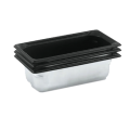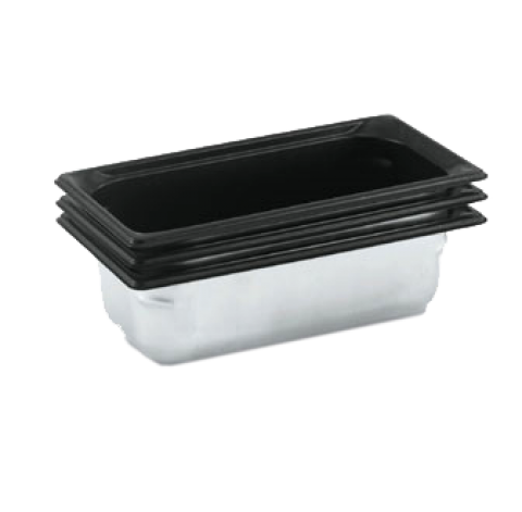 Super Pan 3® 1/3 GN Food Pan, 2-1/2" deep (65mm), 2.5 qt capacity, 22/300 series stainless steel with black SteelCoatX3 coating, non-stick, top flange corners with concave indentation, ramped sides, reverse form flattened edge, framing shoulder, interchangeable with SPV plastic pan line, meets gastronorm (EN 631-1) standard, NSF, Made in USA (Refer to vollrathfoodservice.com for full warranty policy)