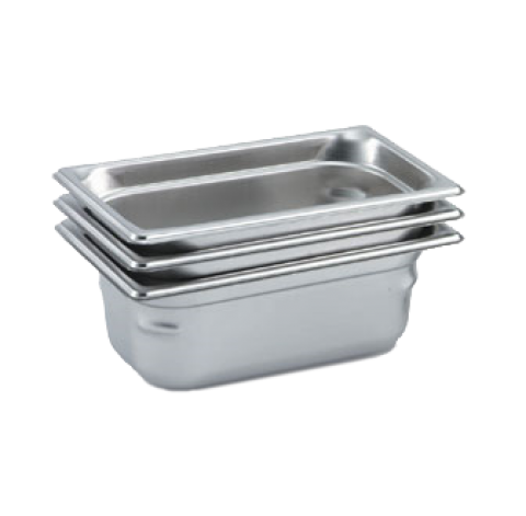 Super Pan 3® 1/4 GN Food Pan, 1-1/2" deep (40mm), 1.2 qt capacity, 22 gauge, 300 series stainless steel, top flange corners with concave indentation, ramped sides, reverse form flattened edge, framing shoulder, meets gastronorm (EN 631-1) standard, NSF, Made in USA (Refer to vollrathfoodservice.com for full warranty policy)
