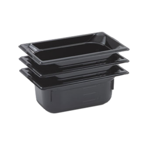 Super Pan® 1/4 GN Food Pan, 6" deep, high-temp black resin, top flange corners with concave indentation, anti-jamming, ramped sides, reverse form flattened edge, framing shoulder, interchanges with SPV stainless steel pan line, NSF, meets gastronorm (EN 631-1) standard (Refer to vollrathfoodservice.com for full warranty policy)
