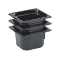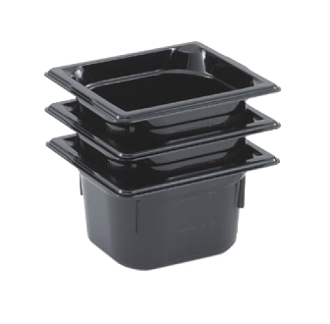 Super Pan® 1/6 GN Food Pan, 2-1/2" deep, high-temp black resin, top flange corners with concave indentation, anti-jamming, ramped sides, reverse form flattened edge, framing shoulder, interchanges with SPV stainless steel pan line, NSF, meets gastronorm (EN 631-1) standard, Made in USA (Refer to vollrathfoodservice.com for full warranty policy)