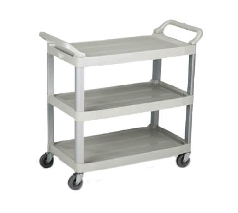 Plastic Cart, BLUE-GRAY multi-purpose, 300 lb, caster capacity, polypropylene shelves & handles, satin finish aluminum uprights, textured shelves, 4" swivel non-marking casters, easy to clean, shipped KD, 40-1/4"L x 19-7/8"W x 37"H, 19-1/4" x 29-1/2" shelf size, 11-3/4" height between shelves, imported (Refer to vollrathfoodservice.com for full warranty policy)