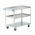 Utility Cart, 500 lb, cap., Stainless 3-Shelf Extra Heavy Duty, Shelves are 21" x 35", unit measures 39-1/2"L x 21"W x 33-1/4"H, 13-1/4" between shelves, 4" swivel casters, 20 gauge bottom & top shelves, 22 gauge middle shelf, 16 gauge uprights, Made in USA (Refer to vollrathfoodservice.com for full warranty policy)
