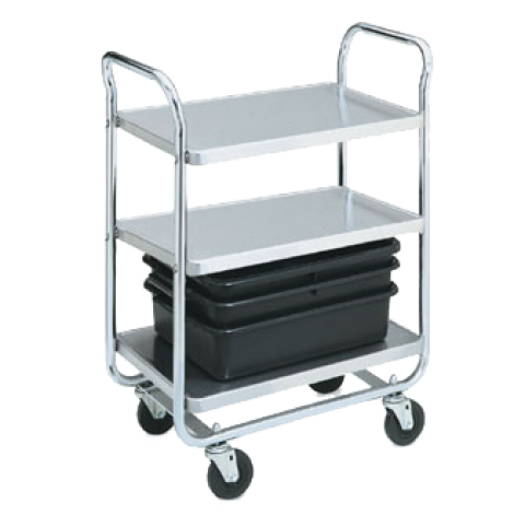Utility Cart, 500 lb, cap., extra heavy duty Chrome plated tubular steel with (3) one-piece stainless steel die drawn 33" x 21" shelves, 40-1/2"L x 21"W x 36-1/4"H, 4" casters, Made in USA (Refer to vollrathfoodservice.com for full warranty policy)