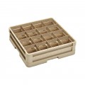 Traex®Compartment Rack, full size, (16) compartment cup/glass, closed wall base with one extender, compartment size 4-7/16" square, 4-13/16" inside height, co-polymer plastic, beige, NSF, Made in USA, (made to order) (Refer to vollrathfoodservice.com for full warranty policy)
