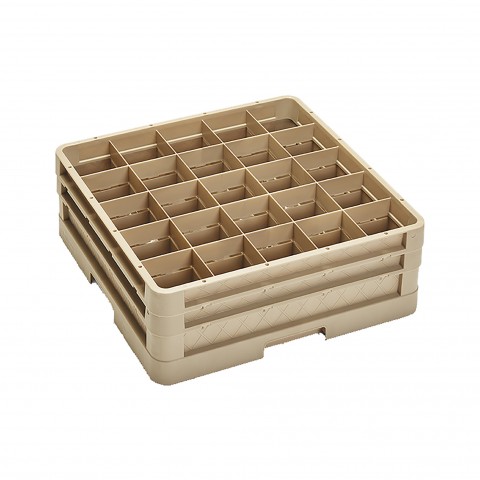 Traex®Compartment Rack, full size, (25) compartment, closed wall base with two extenders, compartment size 3-1/2" square, 6-3/8" inside height, co-polymer plastic, beige, NSF, Made in USA, (made to order) (Refer to vollrathfoodservice.com for full warranty policy)