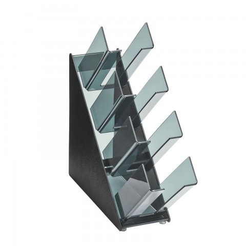 4 High Countertop Lid Organizer, 5-1/4"W x 20-3/4"D x 19-1/2"H, accommodates lids & cups 2-5/8" - 4-3/4" dia., black ABS & smoked acrylic, NSF, Made in USA (Refer to vollrathfoodservice.com for full warranty policy)