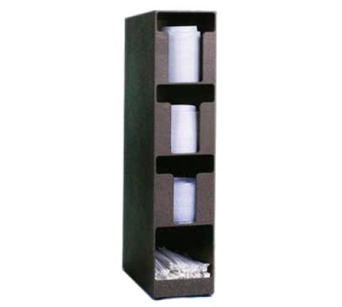 Vertical, Three-Pocket Lid & Straw Dispenser, three lid holders & (1) holder for wrapped straws, counter top, ABS plastic, non-skid rubber feet, black, 24 3/4"H x 5-1/2"W x 13" D (Refer to vollrathfoodservice.com for full warranty policy)