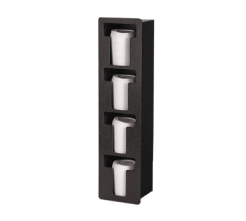 Flush Mount Lid Holder, (4) columns, vertical mount, 6-1/2"W x 5-3/8"D x 25-1/2"H (overall), 24-9/16" x 5-9/16" (cutout size), black impact-resistant molded thermoplastic construction (includes mounting screws) (Refer to vollrathfoodservice.com for full warranty policy)