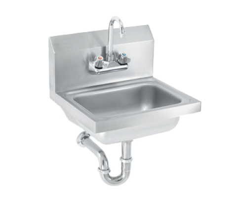 Hand Sink, wall-mounted, 17"W x 15"D OA, 5-1/2" deep bowl, 2" drain, includes: bracket, strainer, gooseneck faucet, 4" centers & P-trap, 20 gauge stainless steel, NSF, Made in USA, CSA (Refer to vollrathfoodservice.com for full warranty policy)