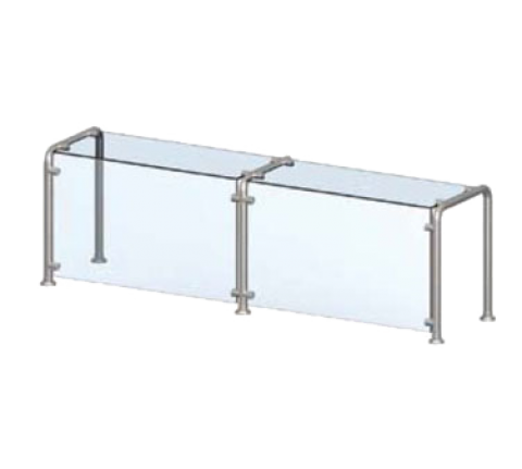 NSF2 (2011) Contemporary Breath Guard, cafeteria with top shelf, 3/8" thick tempered glass with polished ends, 1" stainless steel tubular construction, tempered glass end panels, for use with Vollrath (4) well Signature Server with laminate or Corian® countertops & (4) well drop-in units, mount to stainless steel solid surface or laminate countertop, 1-year warranty, Made in USA, custom sizes available, contact Vollrath for dimensions (Refer to vollrathfoodservice.com for full warranty policy)