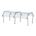 NSF2 (2011) Contemporary Breath Guard, double-sided buffet, 3/8" thick tempered glass with polished ends, 1" stainless steel tubular construction, tempered glass end panels, for use with Vollrath (5) well Signature Server with laminate or Corian® countertops & (5) well drop-in units, mount to stainless steel solid surface or laminate countertop, 1-year warranty, Made in USA, custom sizes available, contact Vollrath for dimensions (Refer to vollrathfoodservice.com for full warranty policy)