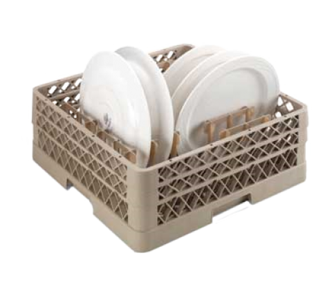 Traex® Full Size Extended Peg Rack, accommodates plates up to 12-1/4" (31.3cm) diameter, 6" peg, open bottom & sidewalls, full size, 6-3/8" (16.2cm) inside height, 7-1/8" (18.1cm) overall height, handles on all (4) sides, beige co-polymer plastic, double wall construction, snap-fit extenders, NSF, Made in USA, pegs are beige (Refer to vollrathfoodservice.com for full warranty policy)
