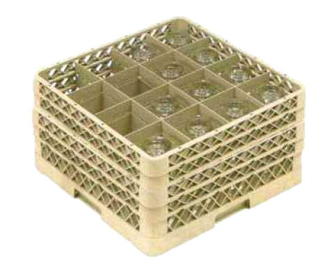 Traex® Full Size Glass/Stemware Rack, (16) compartment, 4-3/8" square compartment size, with (2) (16) compartment extenders & (1) open extender, open bottom & sidewall, 7-7/8" max inside height, handles on all (4) sides, co-polymer plastic, full size (19-3/4" x 19-3/4") double wall construction, snap-fit extenders, specify color, NSF, Made in USA (Refer to vollrathfoodservice.com for full warranty policy)