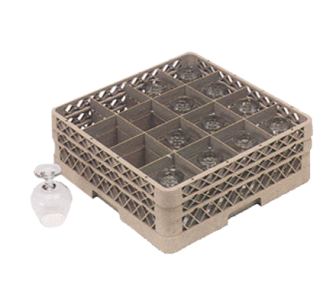 Traex® Full Size Glass/Stemware Rack, (16) compartment, 4-3/8" square compartment size, with (4) (16) compartment extenders, open bottom & sidewall, 9-7/16" max inside height, handles on all (4) sides, co-polymer plastic, full size (19-3/4" x 19-3/4") double wall construction, snap-fit extenders, specify color, NSF, Made in USA (Refer to vollrathfoodservice.com for full warranty policy)