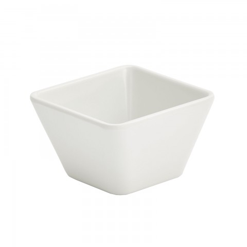Melamine Bowl, XS square, White, 1/8 QT. 3 1⁄2" W x 3 1⁄2" L x 2 1⁄8" H. Dishwasher safe. (Refer to vollrathfoodservice.com for full warranty policy)