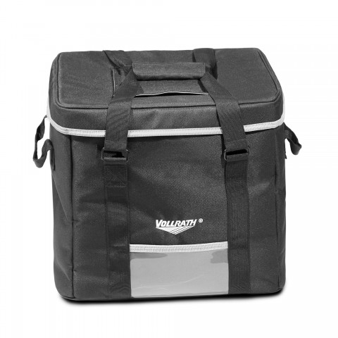 Milk/Meal Delivery Bag, 1-Series, 15-1/2"W x 15-1/2"D x 14"H, holds (1) milk crate as well as other food and beverage containers for meal delivery, reinforced stitching, 2" thick insulation, velcro top flap, moisture-resistant outer shell material, carrying straps, sturdy bottom, vinyl liner, collapsible for easy storage, durable zipper closures with fold-over flap, PVC window picket holds order slips, menus, or brochures, reflective piping for safer nighttime delivery (Refer to vollrathfoodservice.com for full warranty policy)