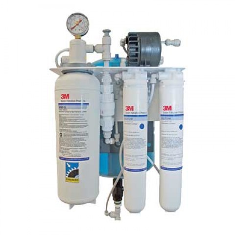 Reverse Osmosis Water Filtration System, up to 200 gpd capacity (double combi units), minimum 60 psi/maximum 125psi, minimum 40°/maximum 100°, Common treatment for sediment, chloramines, chlorine, chloride, hardness & TDS reduction, integrated pump & storage tank, includes: wall-mount bracket, quick disconnect plumbing & special installation fittings kit for Vulcan Combi Oven/Steamers with standard 3/4" water lines & spray hose