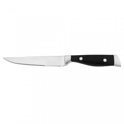 Saloon™ Steak Knife, 9-1/8" O.L, 4-3/4" blade, forged, serrated, pointed tip, Delrin plastic handle, 420 stainless steel blade, black