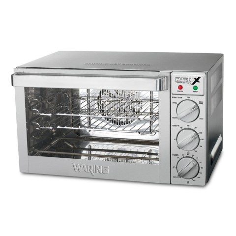 Commercial Convection Oven, countertop, 21"W x 19"D x 12"H, electric, 1/4 size, die-cast manual control knobs, 150°-500°F temperature range, holds (3) quarter-size sheet pans (not included), (2) baking racks & (1) quarter-size sheet pan (included), double-pane glass oven door, stainless steel construction with brushed finish, 230v/50/60, type F plug, CE, RoHS, Europe, FOR INTERNATIONAL USE ONLY (contact company for price)