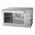 Commercial Convection Oven, countertop, 23"W x 23"D x 15"H, electric, 1/2 size, die-cast manual control knobs, 150°-500°F temperature range, holds (4) half-size sheet pans (not included), (3) baking racks & (1) half-size sheet pan (included), double-pane glass oven door, stainless steel construction with brushed finish, 230v/50/60, type G plug, CE, RoHS, UK, FOR INTERNATIONAL USE ONLY (contact company for price)