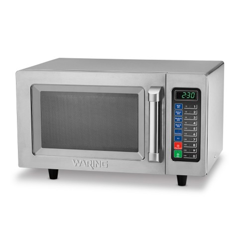 Microwave Oven, medium duty, 1000 watts, 0.9 cu. ft., 20"W x 17"D x 12-1/4"H overall, 11-3/4"W x 11-3/4"D x 8"H interior dimensions, side hinged door with glass window, (10) menu pads with capacity to program (100) menus, (5) power levels, 3-stage cooking, ADA compliant braille touch pads, interior oven light, stainless steel construction, 230v/50, type F plug, CE, Europe, FOR INTERNATIONAL USE ONLY (contact company for price)
