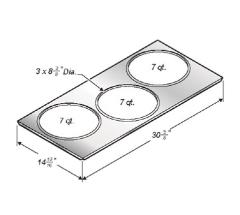 Adapter Top, to convert 12" x 27" SMPT-27 warmer to hold (3) 7 quart insets