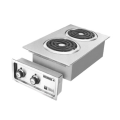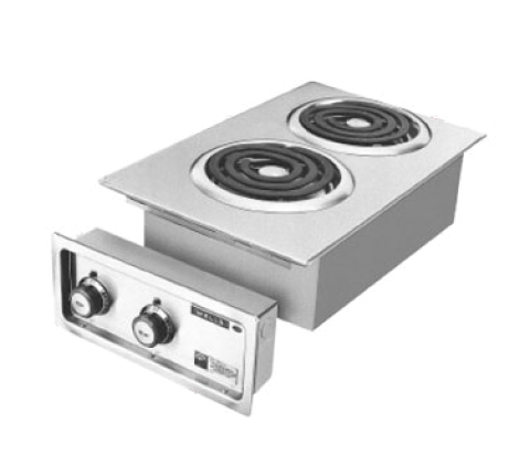 Hotplate, built-in, electric, 14-3/4" W, two burners, 8" Ø flat spiral tubular elements, with (2) infinite heat controls, front mounted, recessed control panel, stainless steel construction drip tray, Wellslok, 3900/5200w, RU, NSF