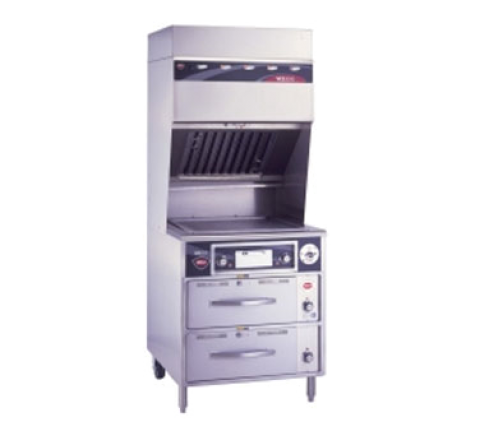 VCS2000 Ventless Griddle, electric, 22" x 18" grill area, thermostatic controls, self-contained hood system, stainless steel construction, RW-26 (2) drawer warmer base, front legs, rear casters, cULus, NSF (NON-RETURNABLE Item) (For replacement filters, this model requires (1) Pre-filter (22618) & (1) HEPA Charcoal Filter Pack (22619))