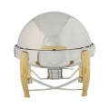 Virtuoso Chafer, 6 qt., round, roll top, stackable, with food pan, water pan and 1 fuel holder, 18/8 stainless steel with mirror finish and gold accents, extra heavyweight (Qty Break = 1 each)