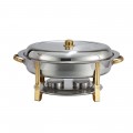 Malibu Chafer, 6 qt., oval, stainless steel, mirror finish cover, gold accents, includes food pan, water pan, and fuel holders (Qty Break = 1 each)